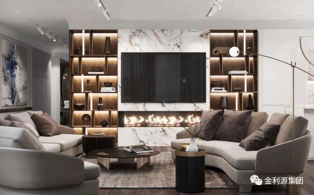 ▲回字型電視柜通常會(huì)做一整面墻收納電視柜,容量非??捎^,不僅最大化地利用了墻面空間,還顯高顯瘦,讓整體空間簡(jiǎn)潔干凈。