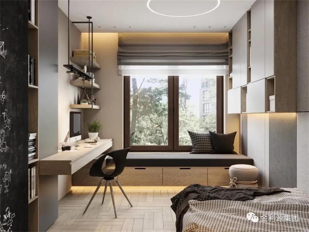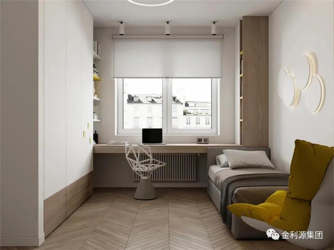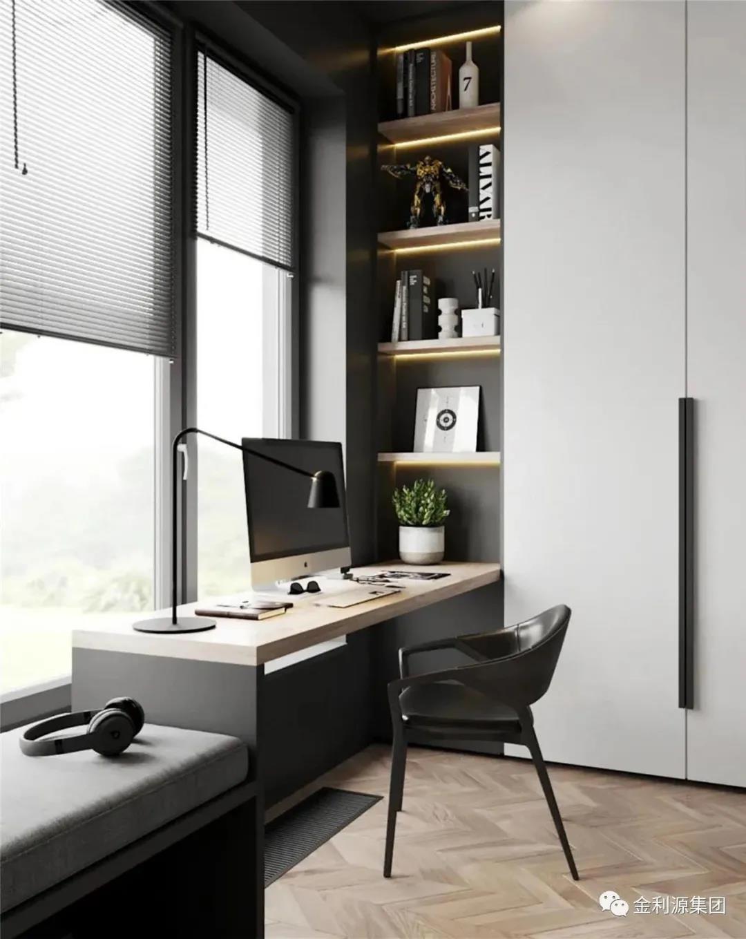將飄窗改成工作區(qū),不僅光線好利于學(xué)習(xí),還最大化的利用了空間,十分巧妙。同時(shí)可以在書(shū)桌旁邊安裝小書(shū)柜或吊柜,用于存放工作資料,無(wú)論是存放還是拿取,抬手就能做到,很方便!