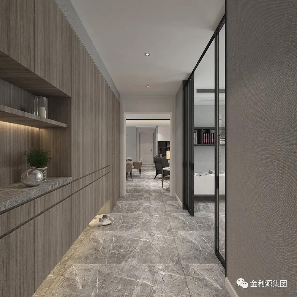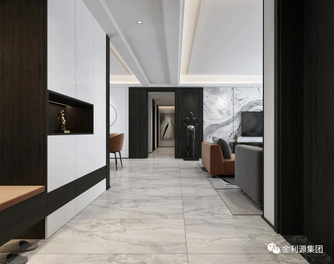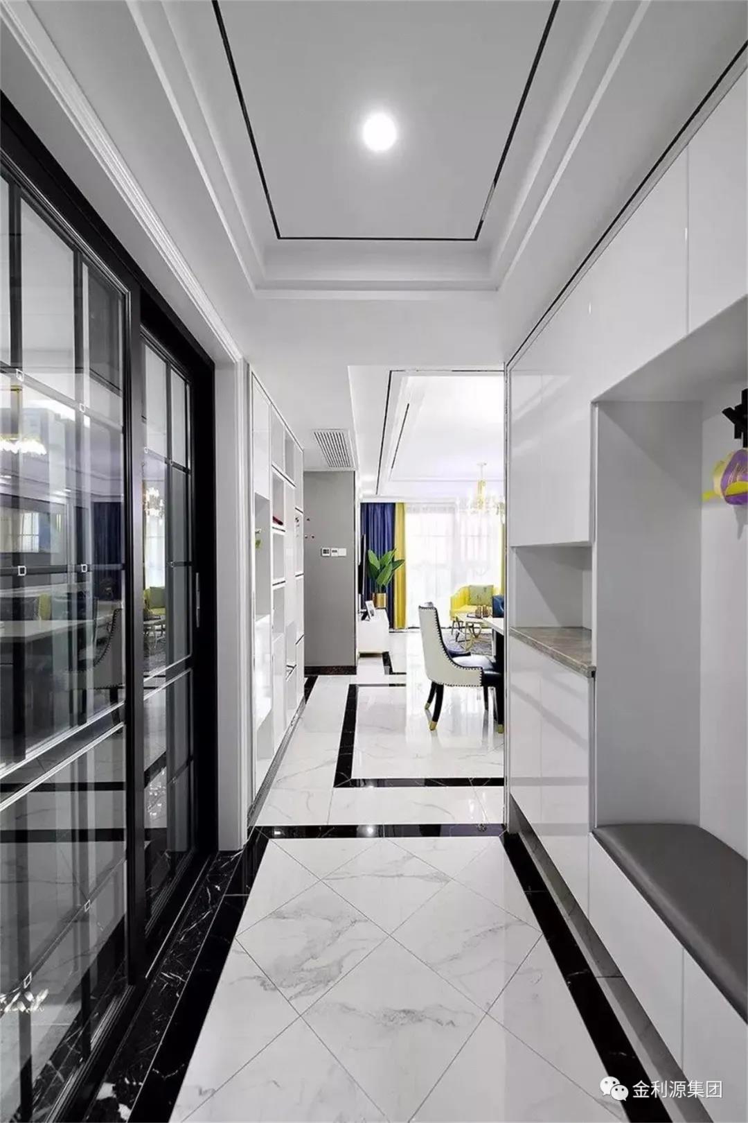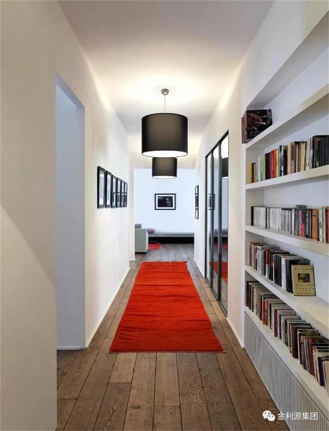 選用明亮的光線,可以使空間顯得寬敞,可以緩解狹長(zhǎng)過道所產(chǎn)生的緊張感。通過光線效果,增強(qiáng)過道的空間感,并且與客廳及其他空間區(qū)域相協(xié)調(diào)。