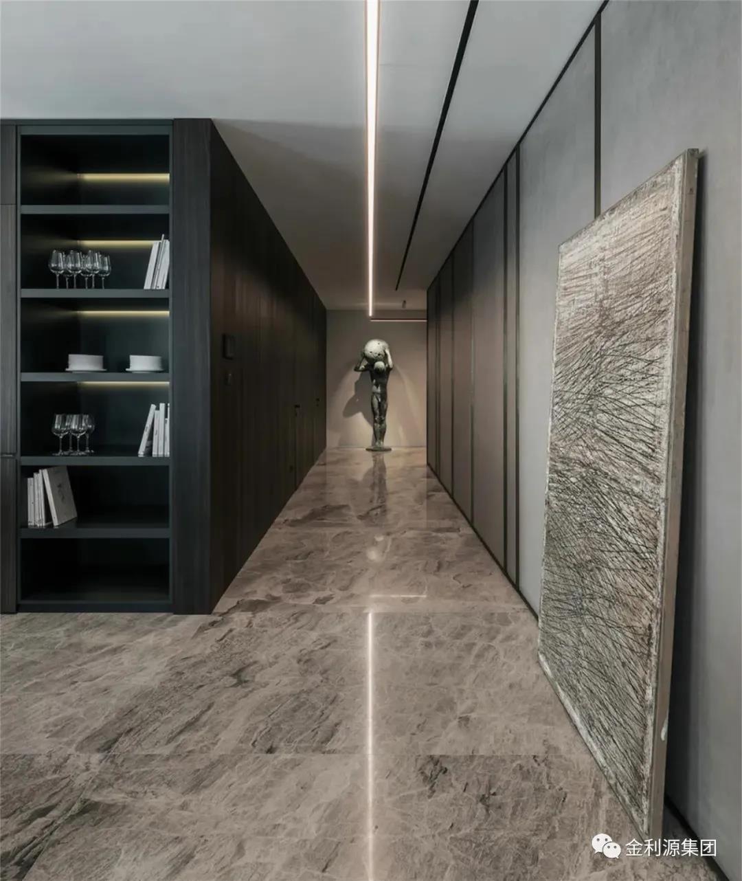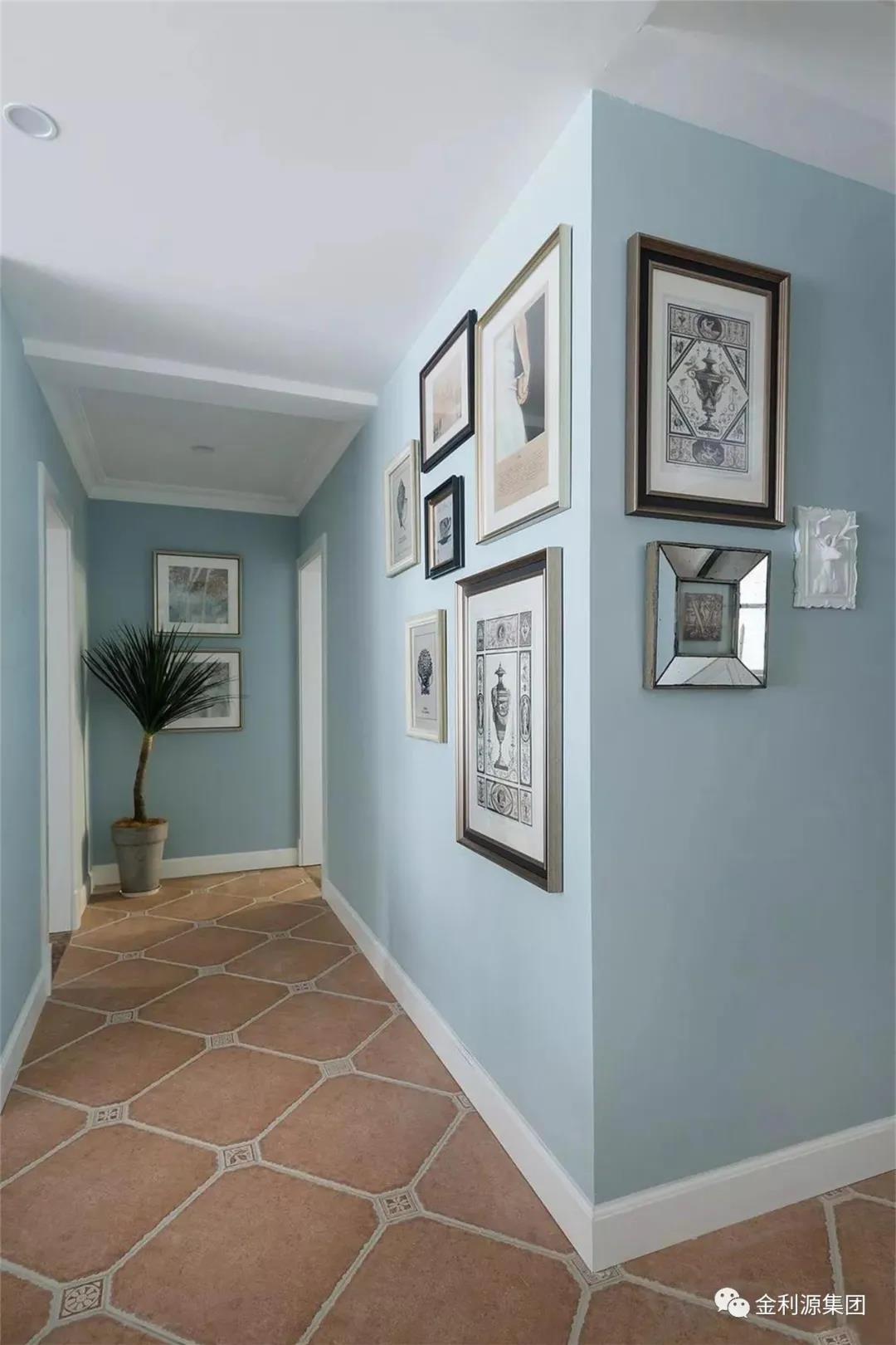 室內(nèi)過道墻面設(shè)計(jì)一般不需要做過多的裝飾和造型,以免占用空間。幾幅畫,或者增加一些具有導(dǎo)向性的裝飾品即可,盡量保持行進(jìn)過程中的通暢,布置要有節(jié)奏感。