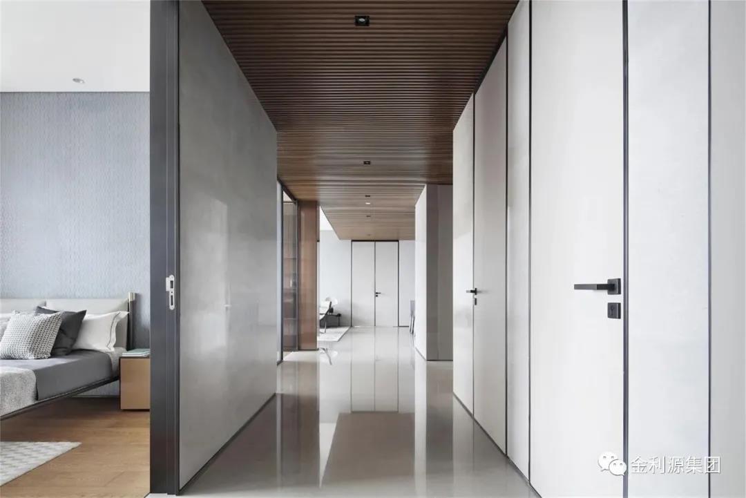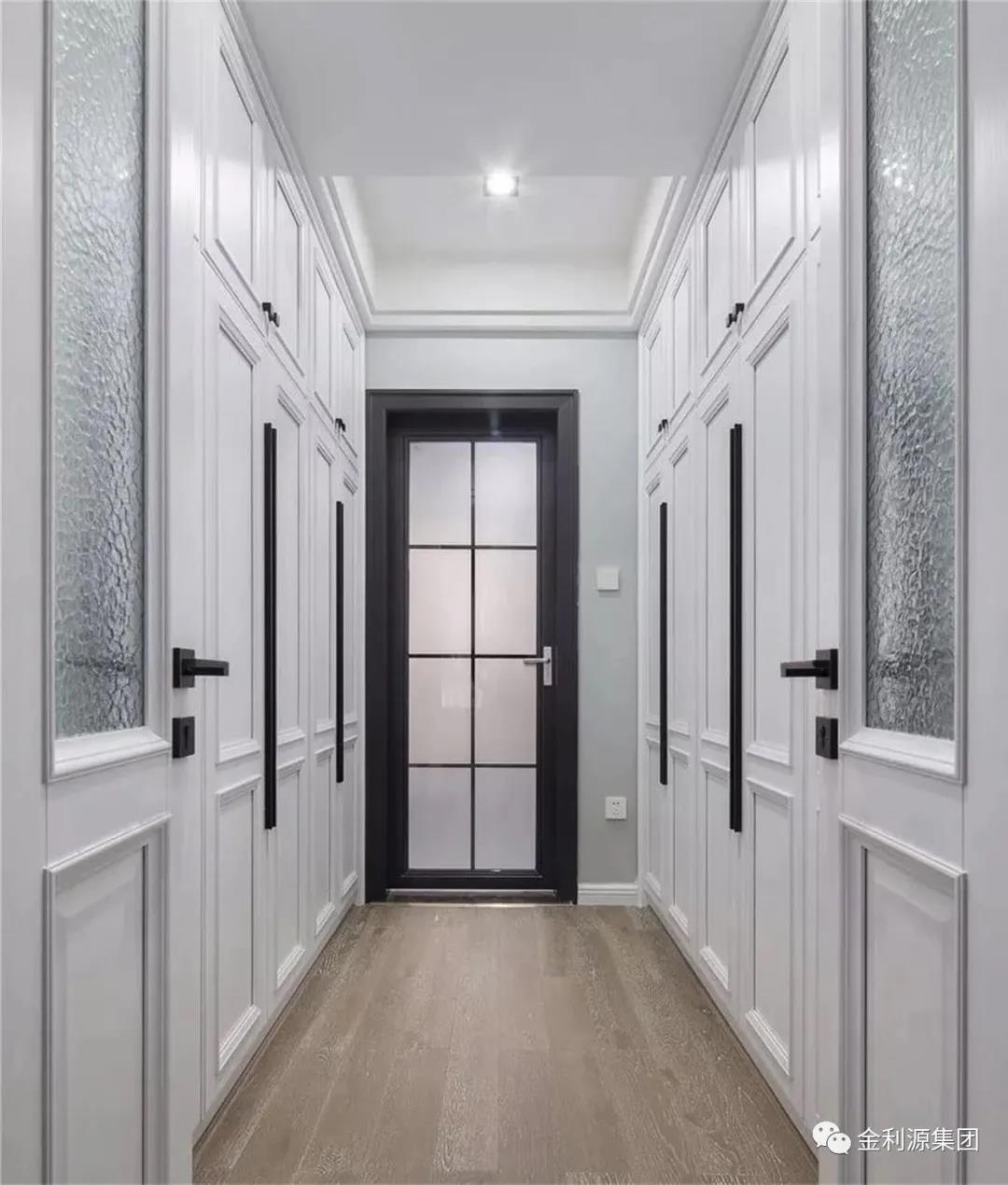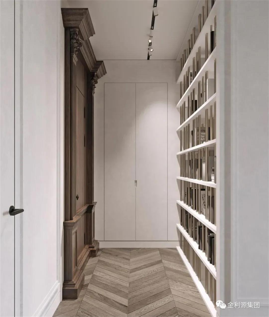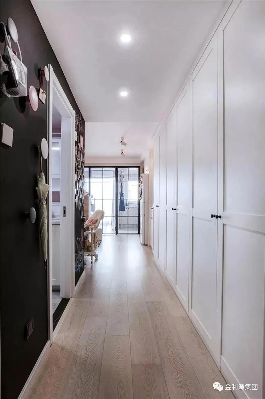 為走廊過道量身定做的柜子,隱藏著巨大的收納空間,全部采用將內(nèi)部封閉起來的柜門設(shè)計(jì),從而保持走廊整潔的觀感,空出的柜面上,還可以添置些裝飾物。
