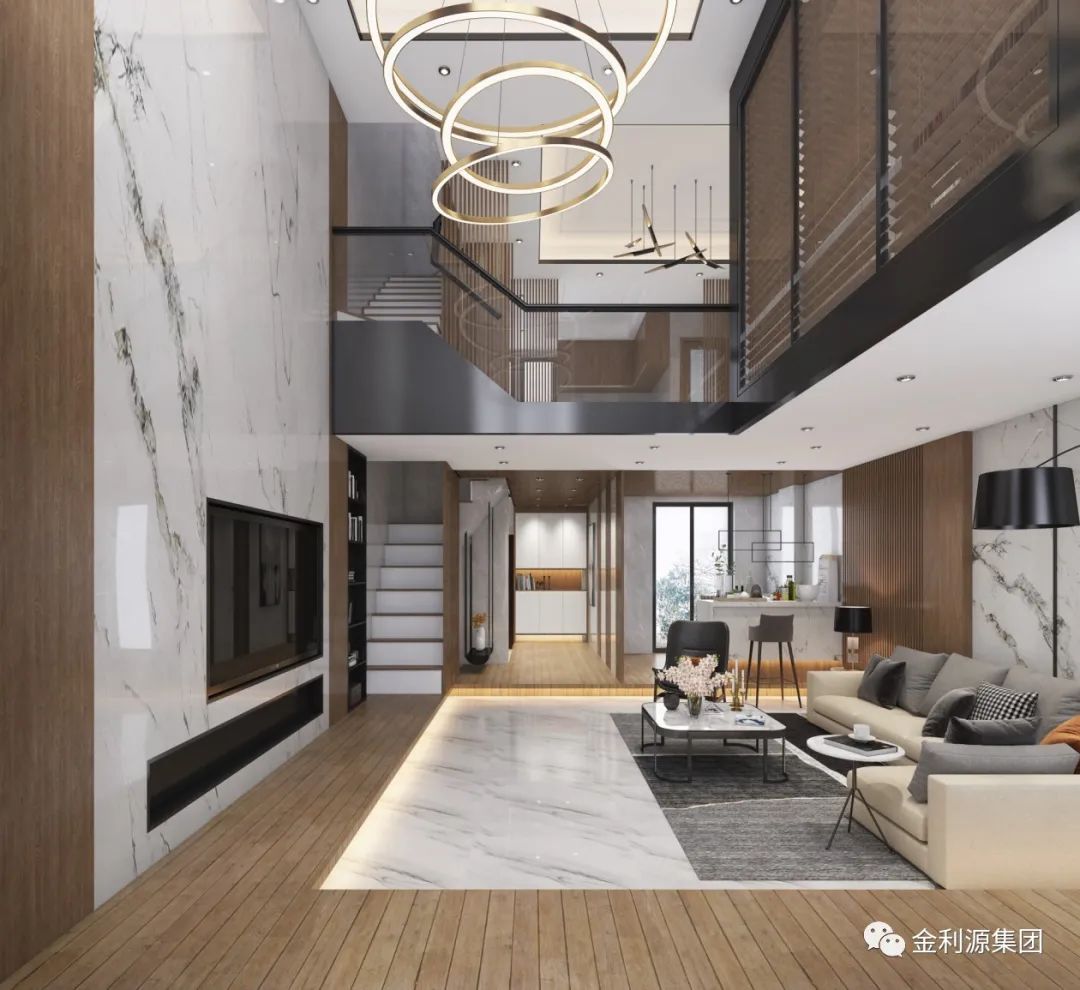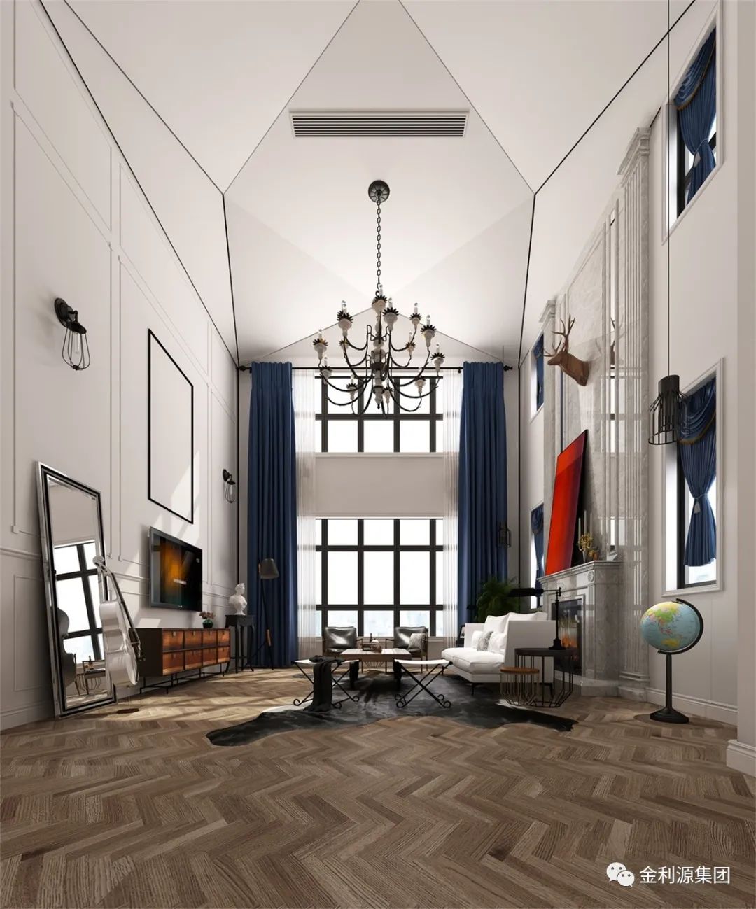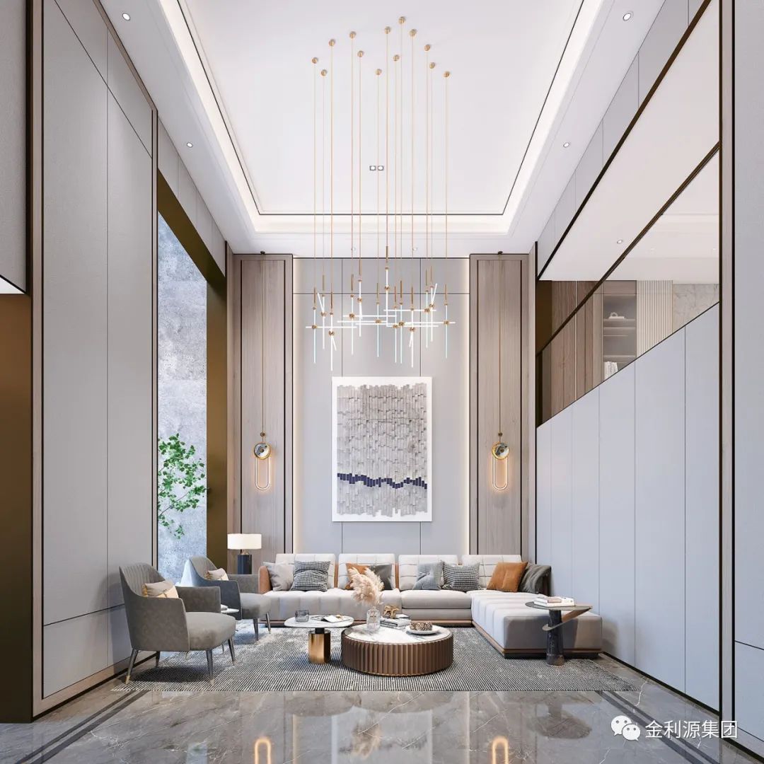 不論是復(fù)式躍層還是別墅聯(lián)排,擁有一個(gè)帶有挑空的客廳仿佛成為了大宅標(biāo)配。在這類型戶型中客廳選擇挑空的設(shè)計(jì),能夠使視覺上更加的開闊,使人在精神上感覺到舒緩、放松,有效地釋放壓力。