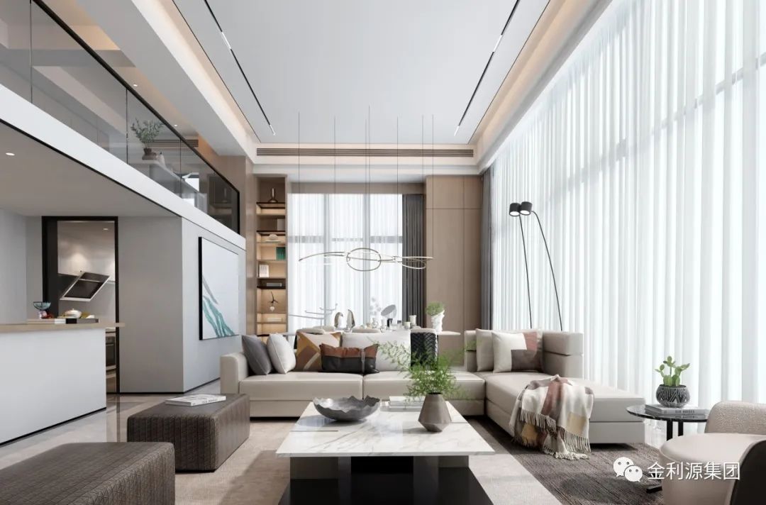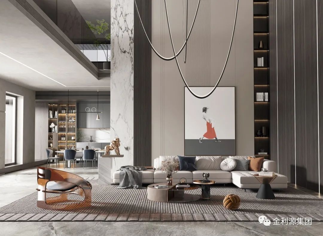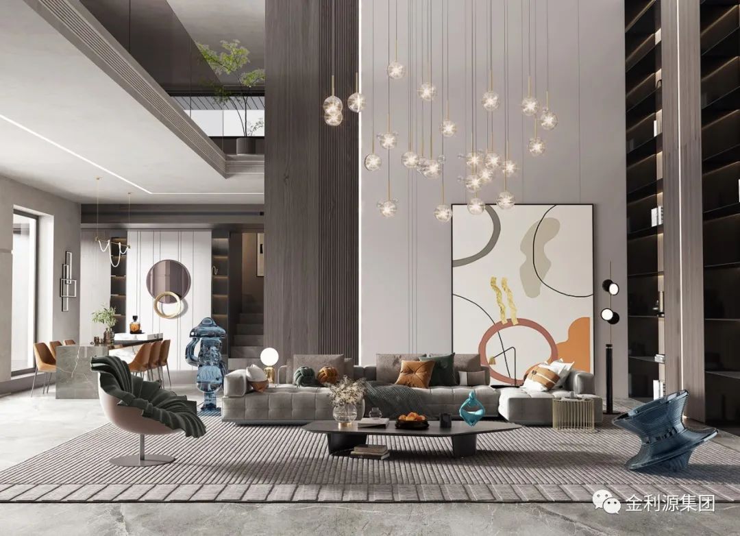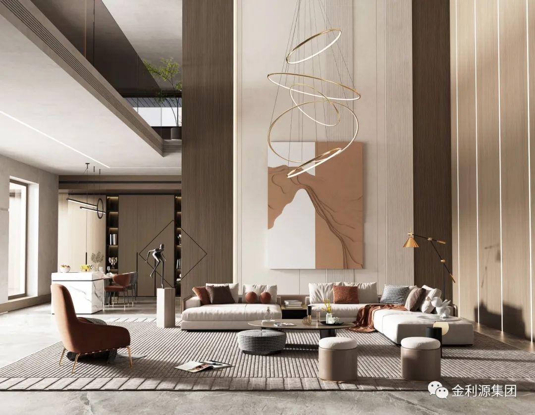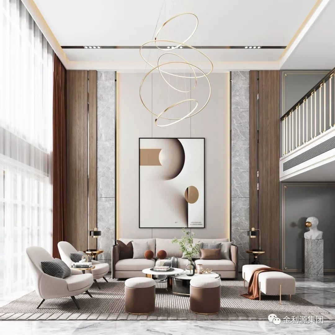 不論是復(fù)式躍層還是別墅聯(lián)排,擁有一個(gè)帶有挑空的客廳仿佛成為了大宅標(biāo)配。在這類型戶型中客廳選擇挑空的設(shè)計(jì),能夠使視覺上更加的開闊,使人在精神上感覺到舒緩、放松,有效地釋放壓力。