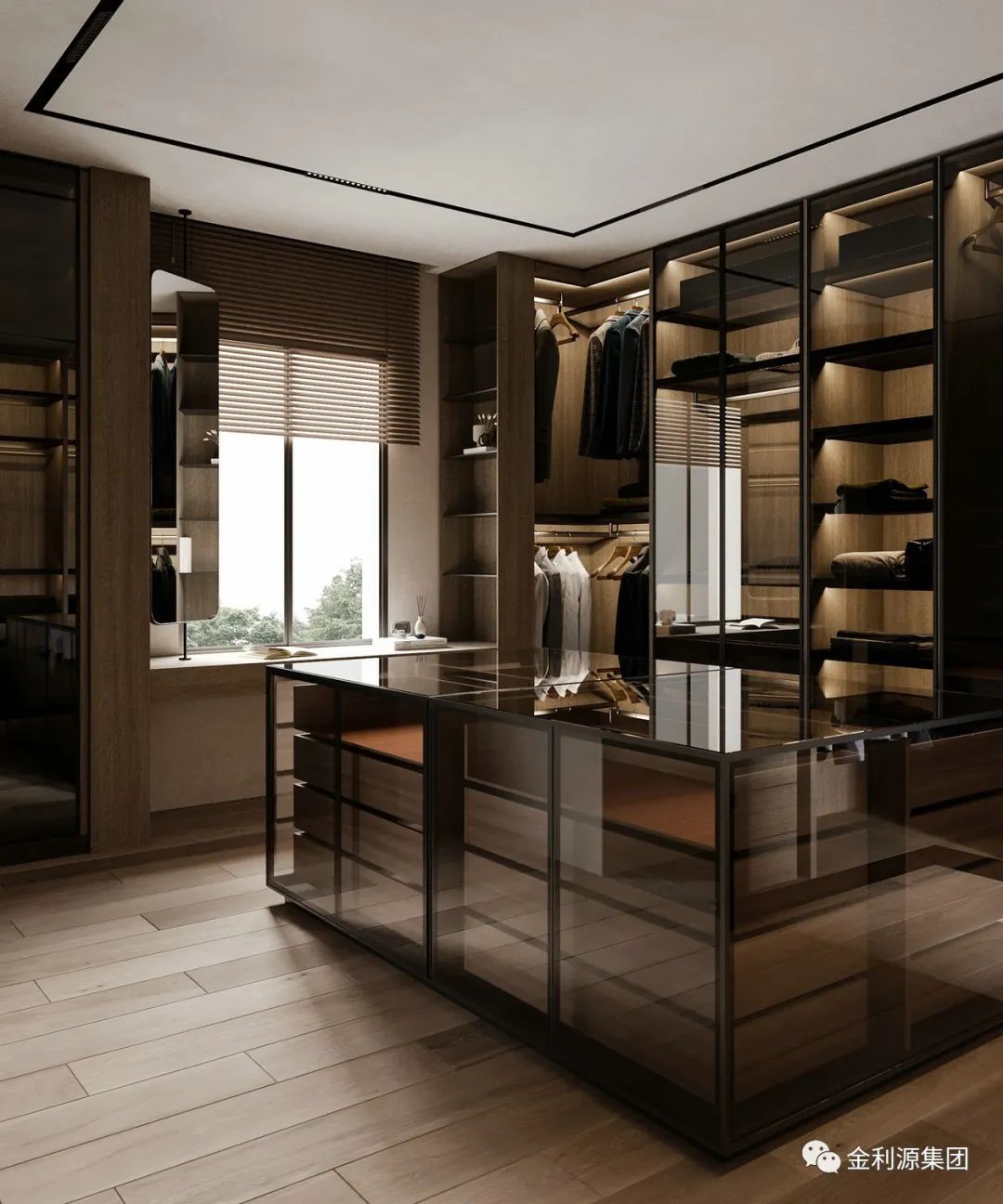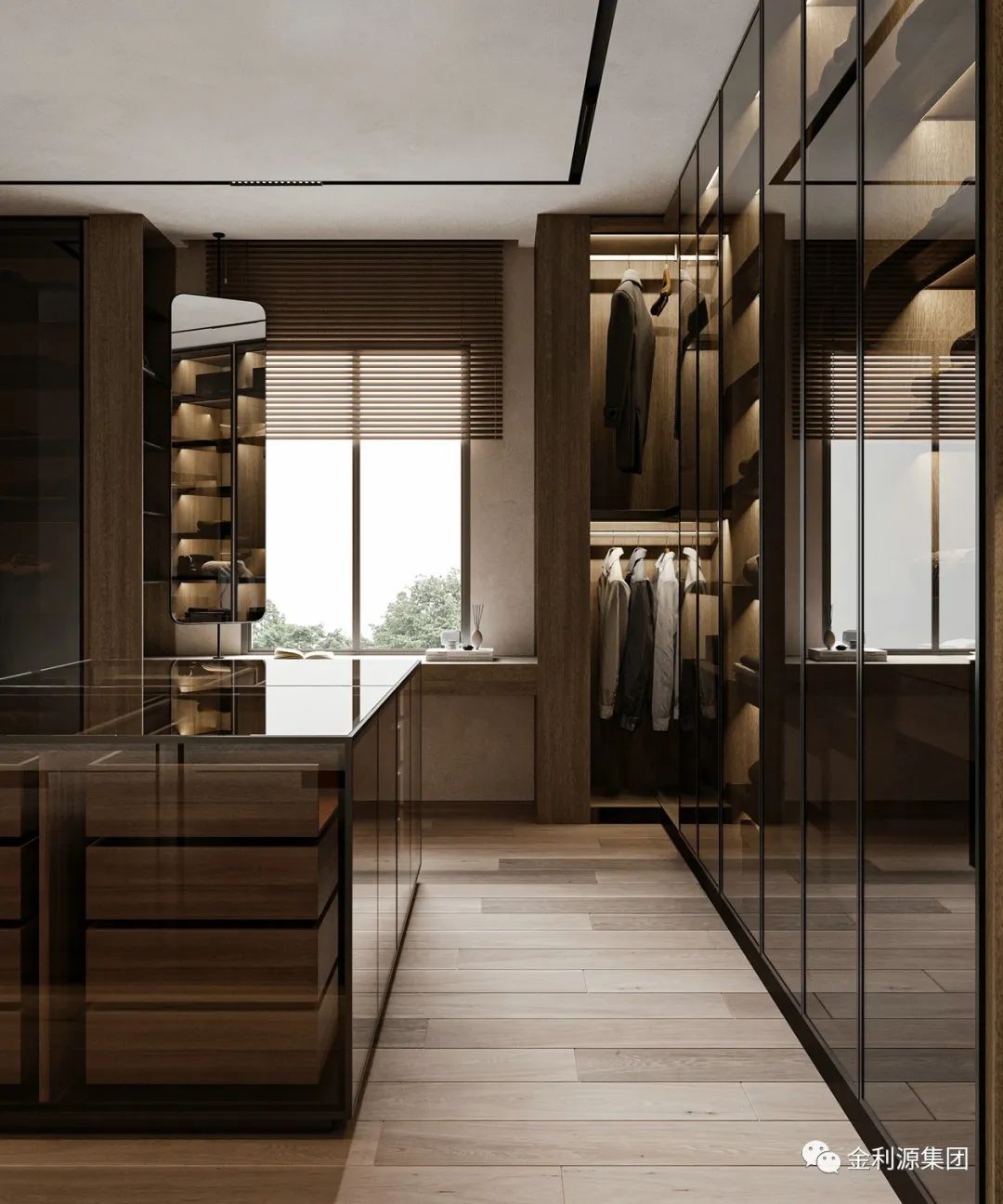 主臥沒有復(fù)雜的設(shè)計,簡簡單單的線條營造美感與遐想。步入式衣帽間的設(shè)計,將收納能力做到最大化。背景墻用木飾面與黑色搭配為主,時尚又不失質(zhì)感。板材品牌有哪些—金利源板材