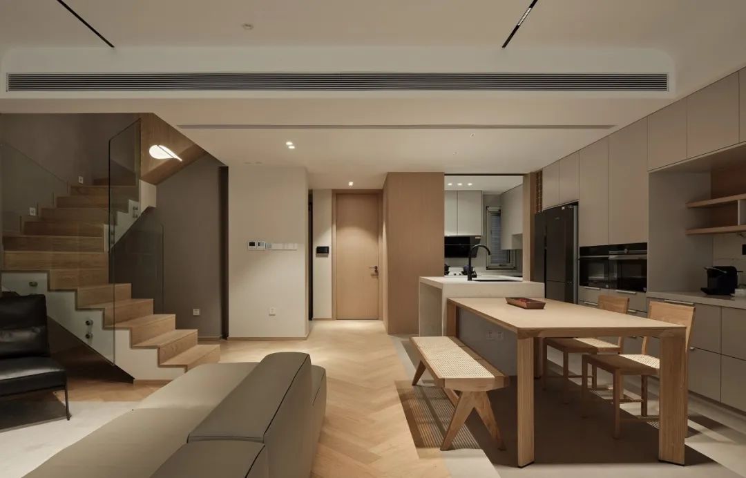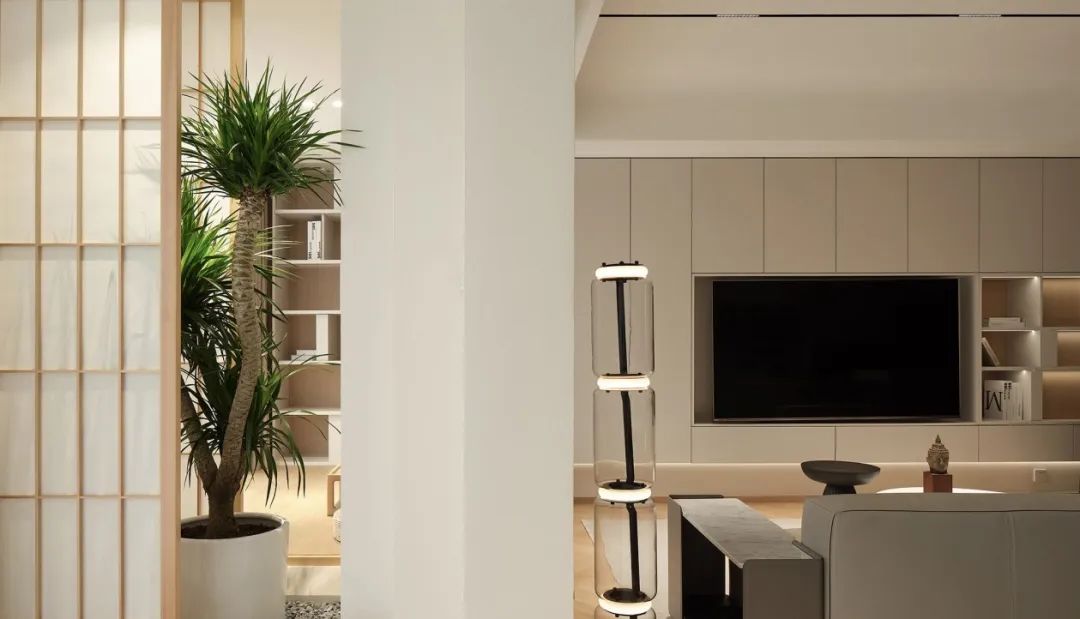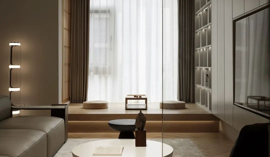 大地色系流轉(zhuǎn)于空間之中,隨者居者的感知力蔓延至更高層級,靠近雅灰的不同形態(tài),分區(qū)明顯,和諧靈動。以中樞立柱為基點,一半交織著會客場景與禪意空間,一半留白詩意與煙火氣息,間隔有序,串聯(lián)情態(tài),躍動出家的溫馨氣氛。