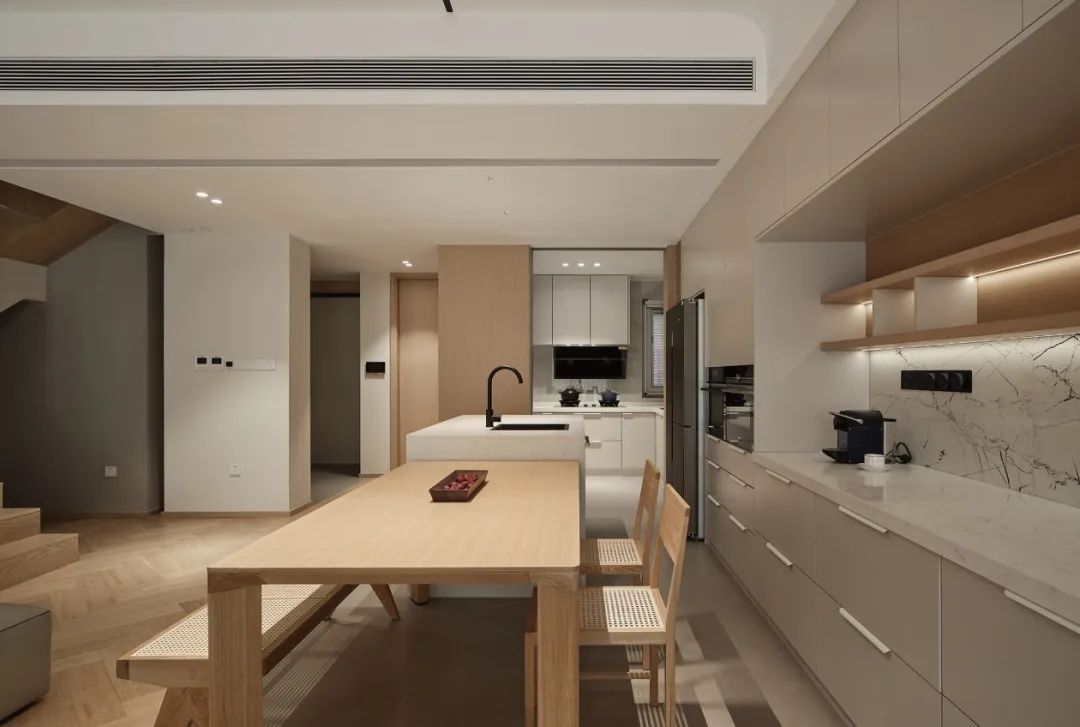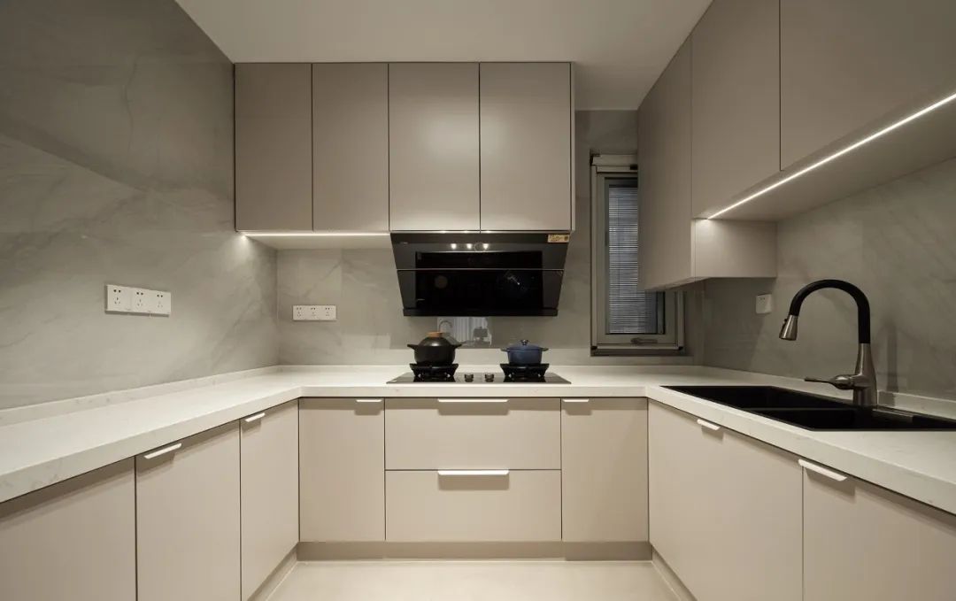 利落的轉(zhuǎn)折,統(tǒng)一的配色,相輔相成,巧妙的削弱空間的擁擠感,包容烹煮習(xí)慣,極致簡約,便利實用。