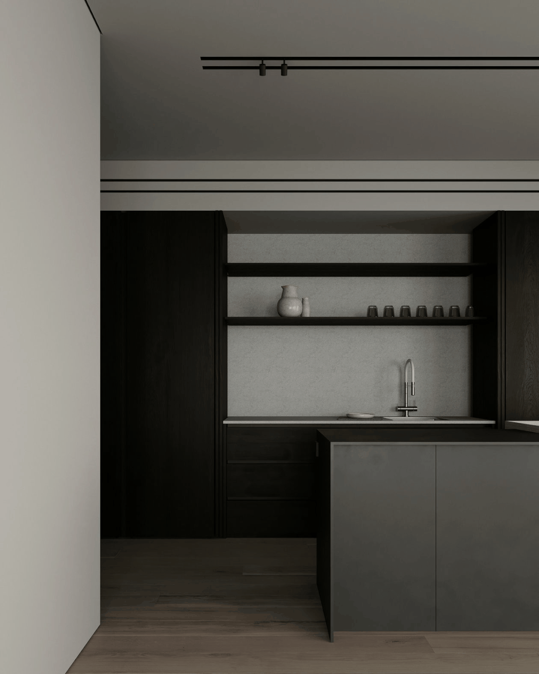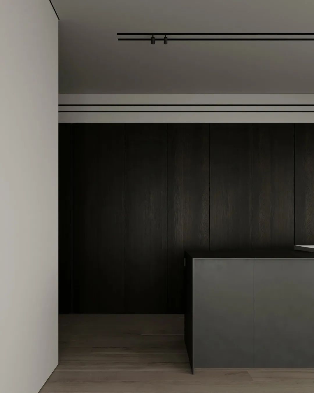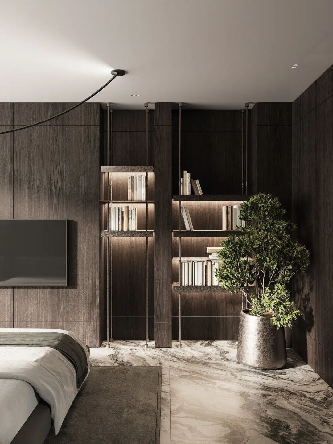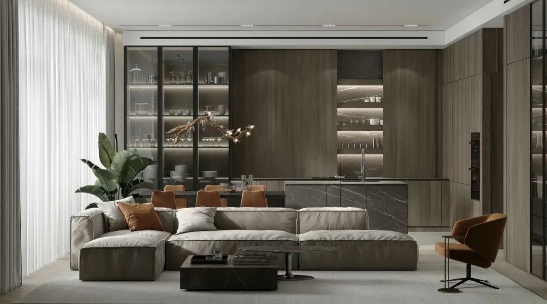 墻柜一體的空間,大氣得體。讓空間在冷靜中更見知性,閱讀、學(xué)習(xí)、居家更顯愉悅。