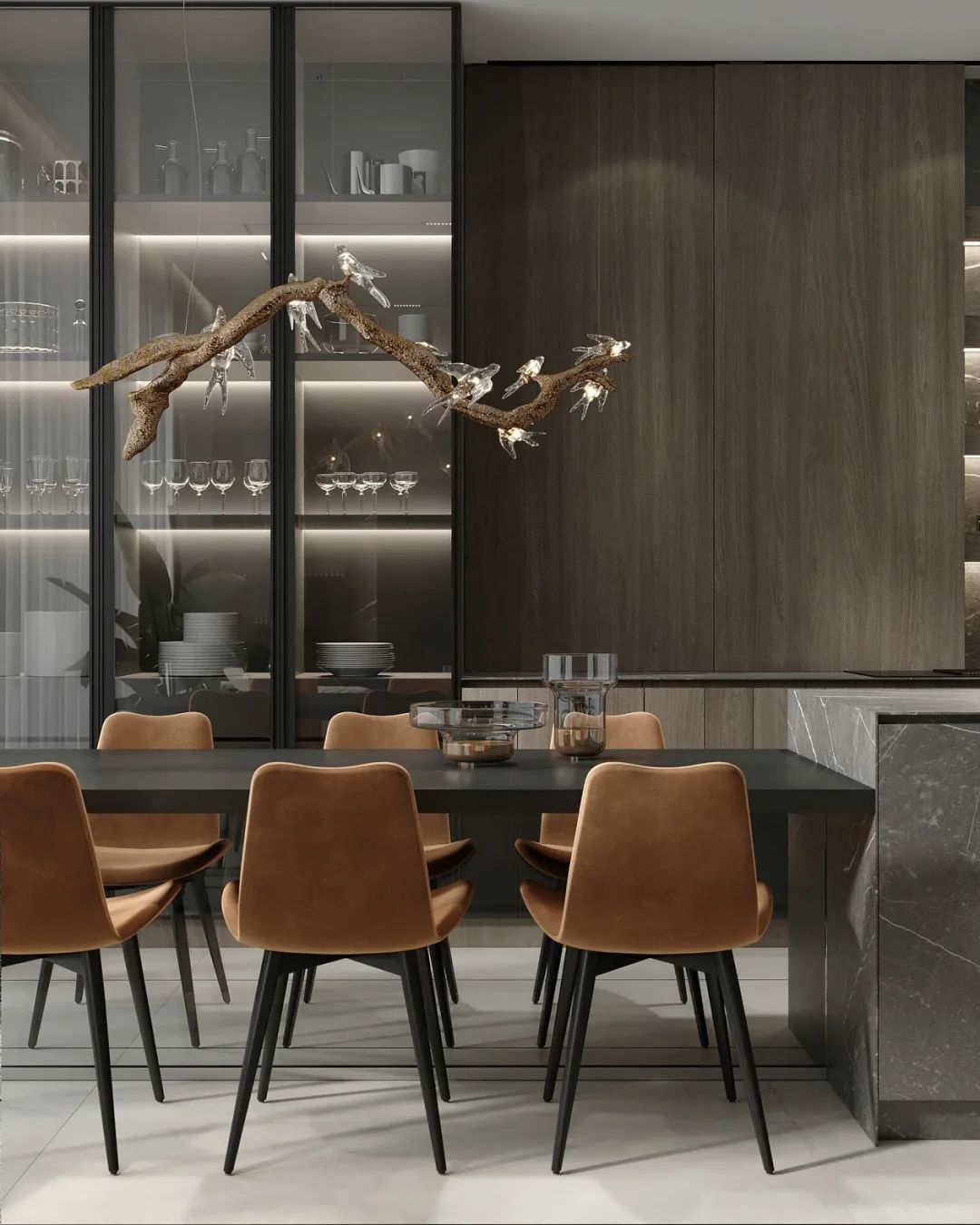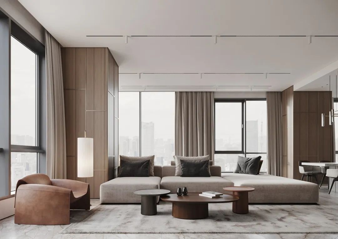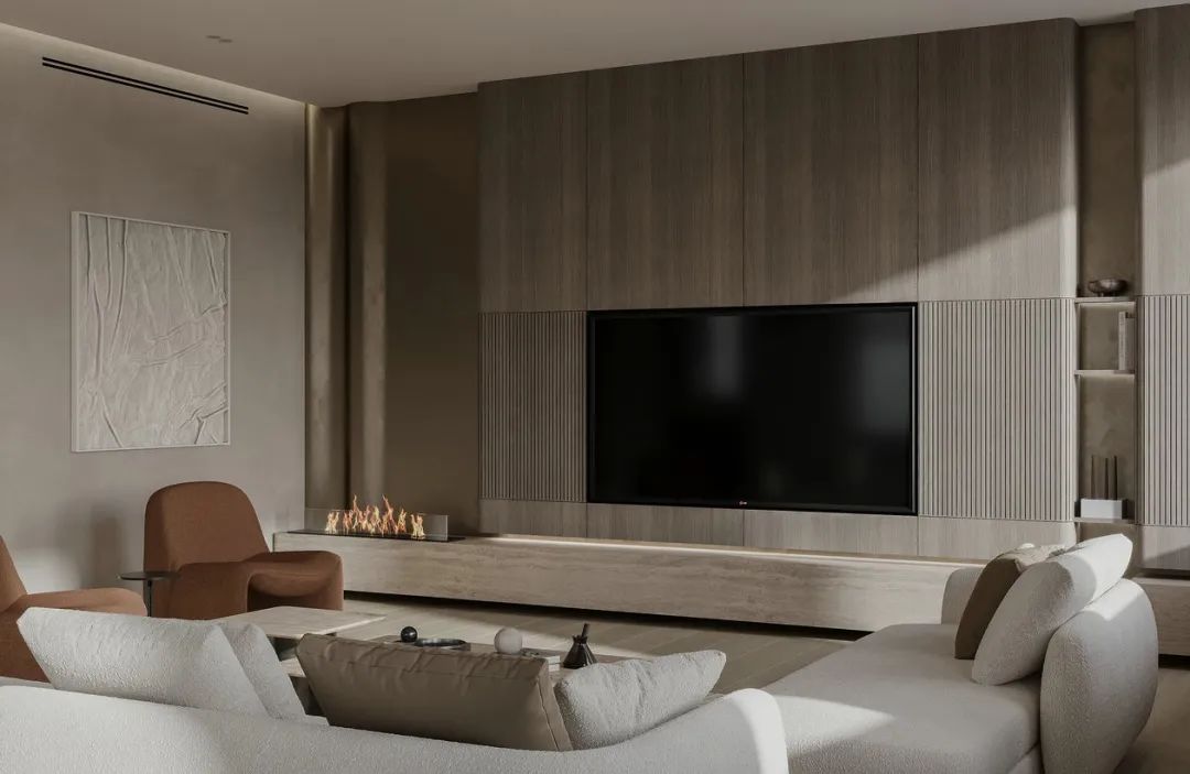 直紋金像花色的應(yīng)用,增加了大自然的儀式感。原木背景墻襯托下,美的不僅是風(fēng)格,更是生活。