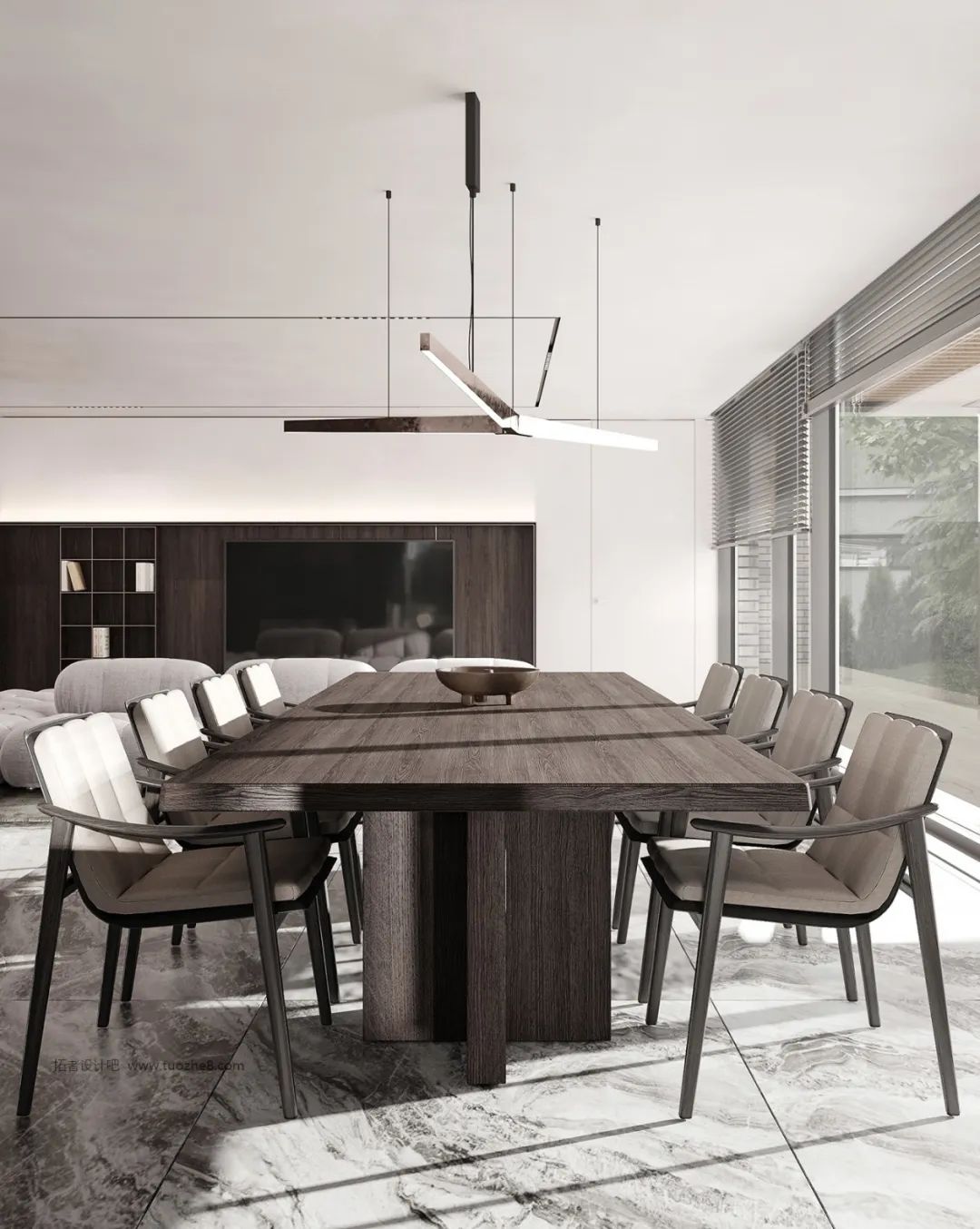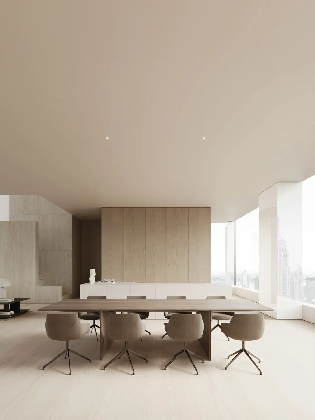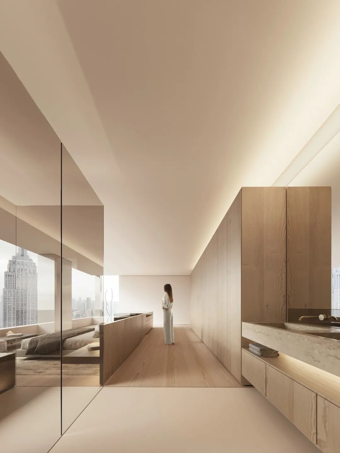 直紋金像花色的應(yīng)用,增加了大自然的儀式感。原木背景墻襯托下,美的不僅是風(fēng)格,更是生活。