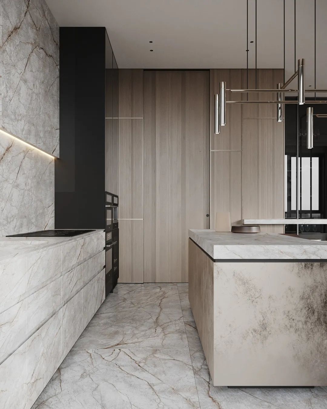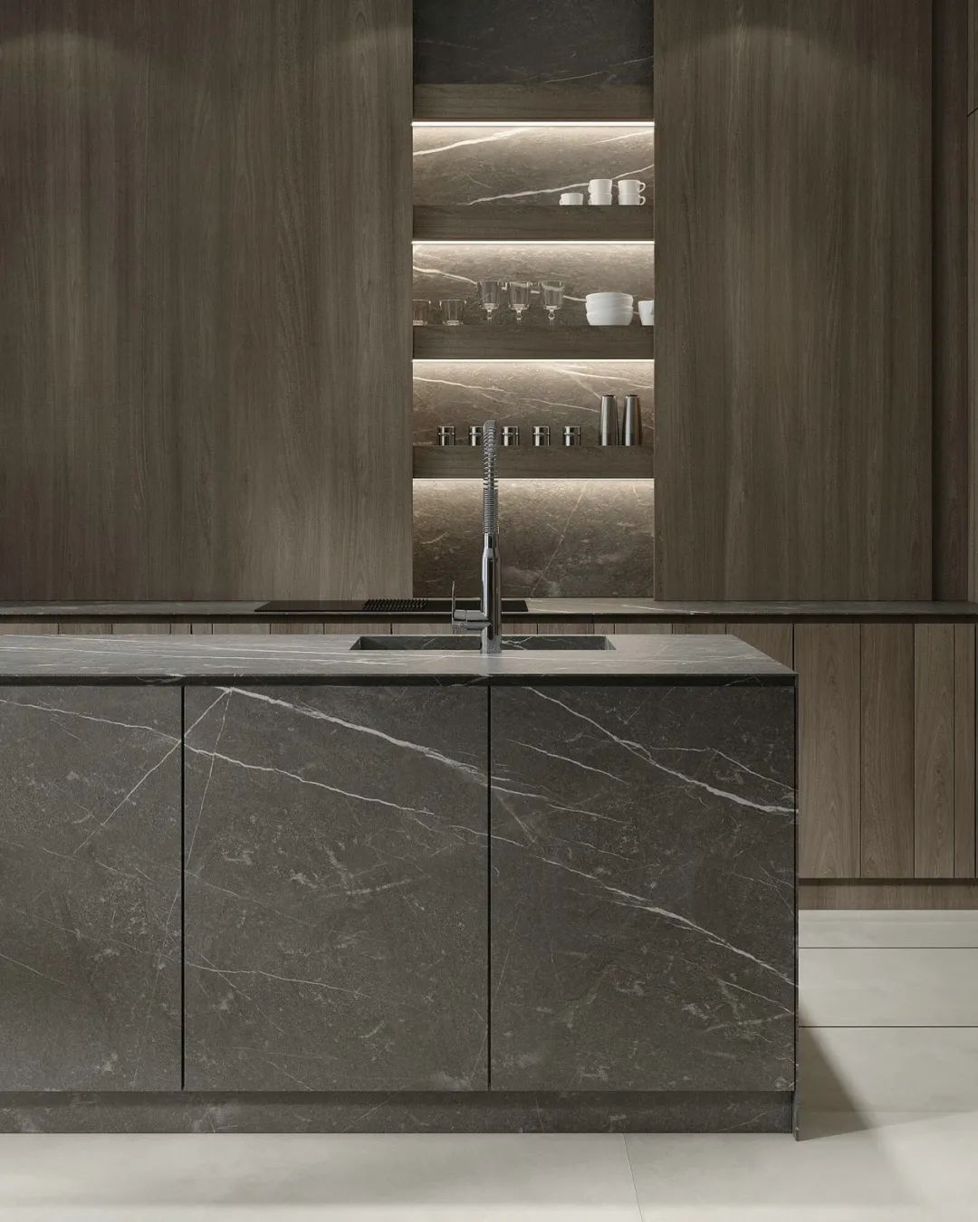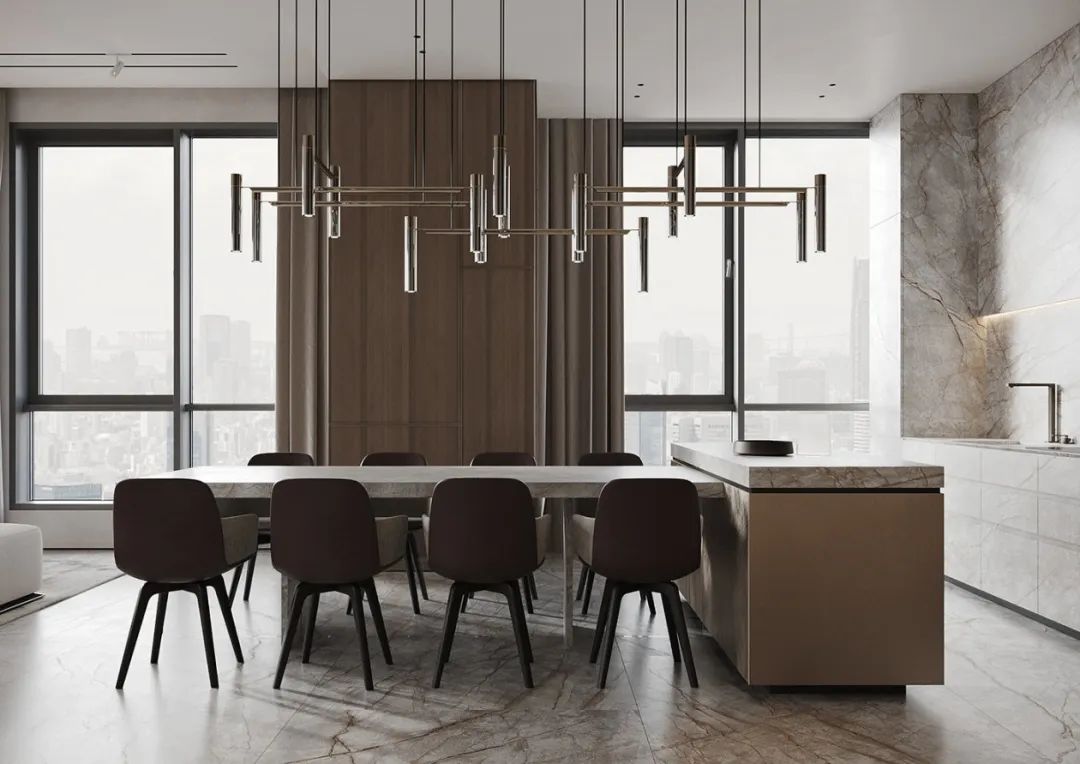 集多種用途于一身的餐廚空間,在TOP胡桃花色的肌理映襯下,空間縱深感倍增,怡然自得。