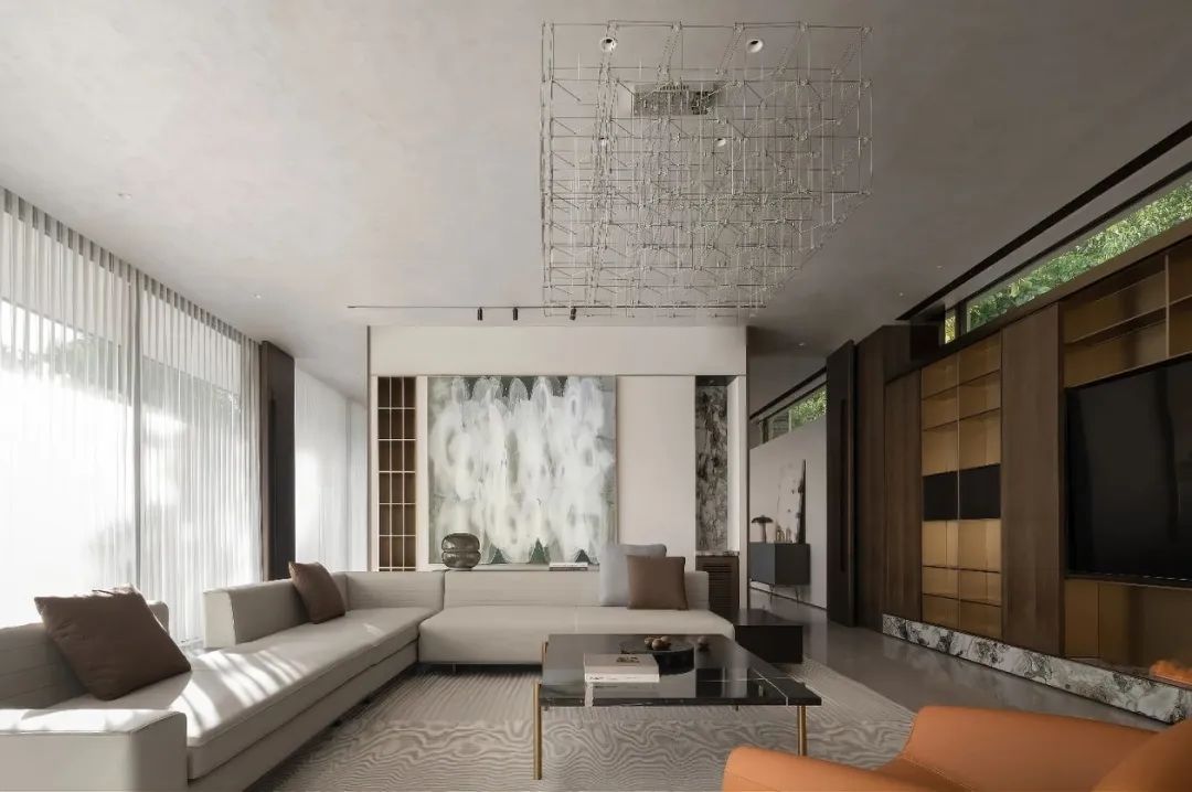 空間整體以白、灰為主要色調(diào),營(yíng)造大氣、高級(jí)的空間氣質(zhì),客廳則根據(jù)空間同頻需求進(jìn)行延展,家具以金利源高品質(zhì)和舒適為主進(jìn)行設(shè)置,局部點(diǎn)綴暖橘色舒適椅。