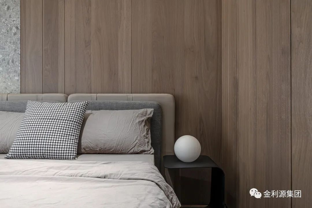 簡約金屬吊燈明亮床頭木樁,裝點綠植鮮活功能區(qū),多元材質(zhì)渾然合體,以自然調(diào)性凝聚安逸…